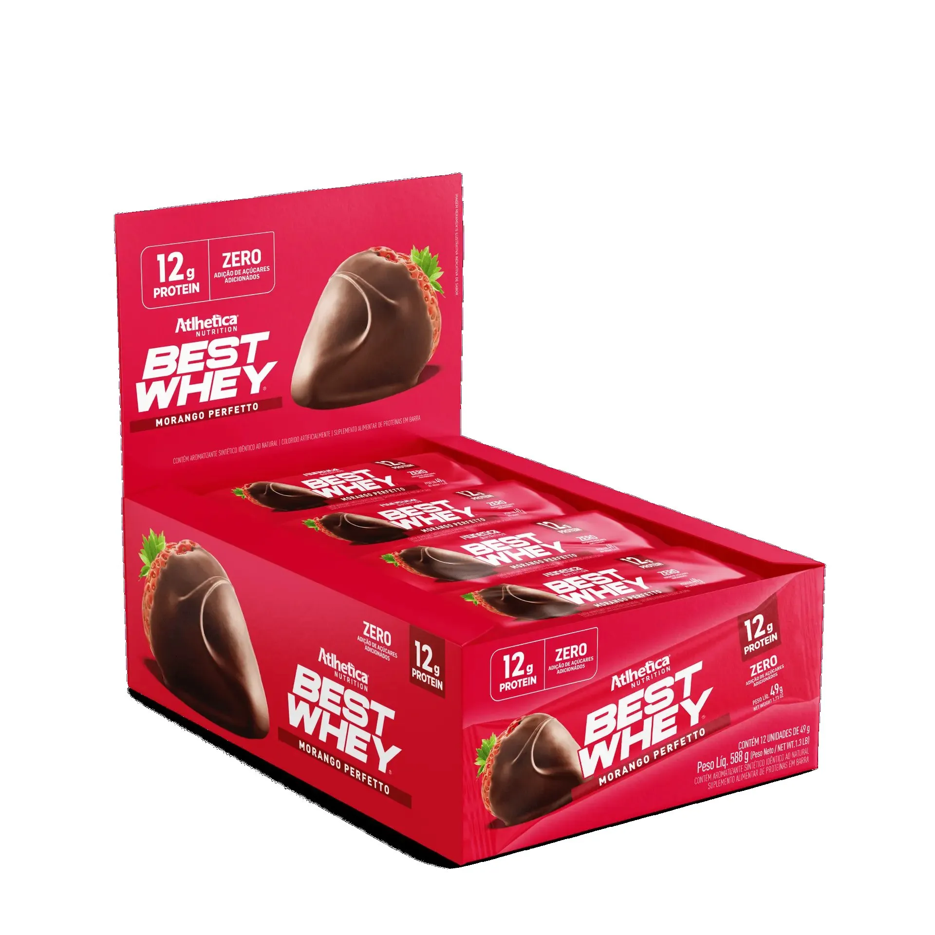 A Best Whey Bar 12g oferece uma opção com mais proteína e volume por barra, mantendo o sabor e leveza da linha.Cada unidade fornece 12g de proteína de alta qualidade, com fibras, polióis e sem adição de açúcar ou glúten.Ideal para quem precisa de um reforço entre refeições, com mais saciedade e sabor.