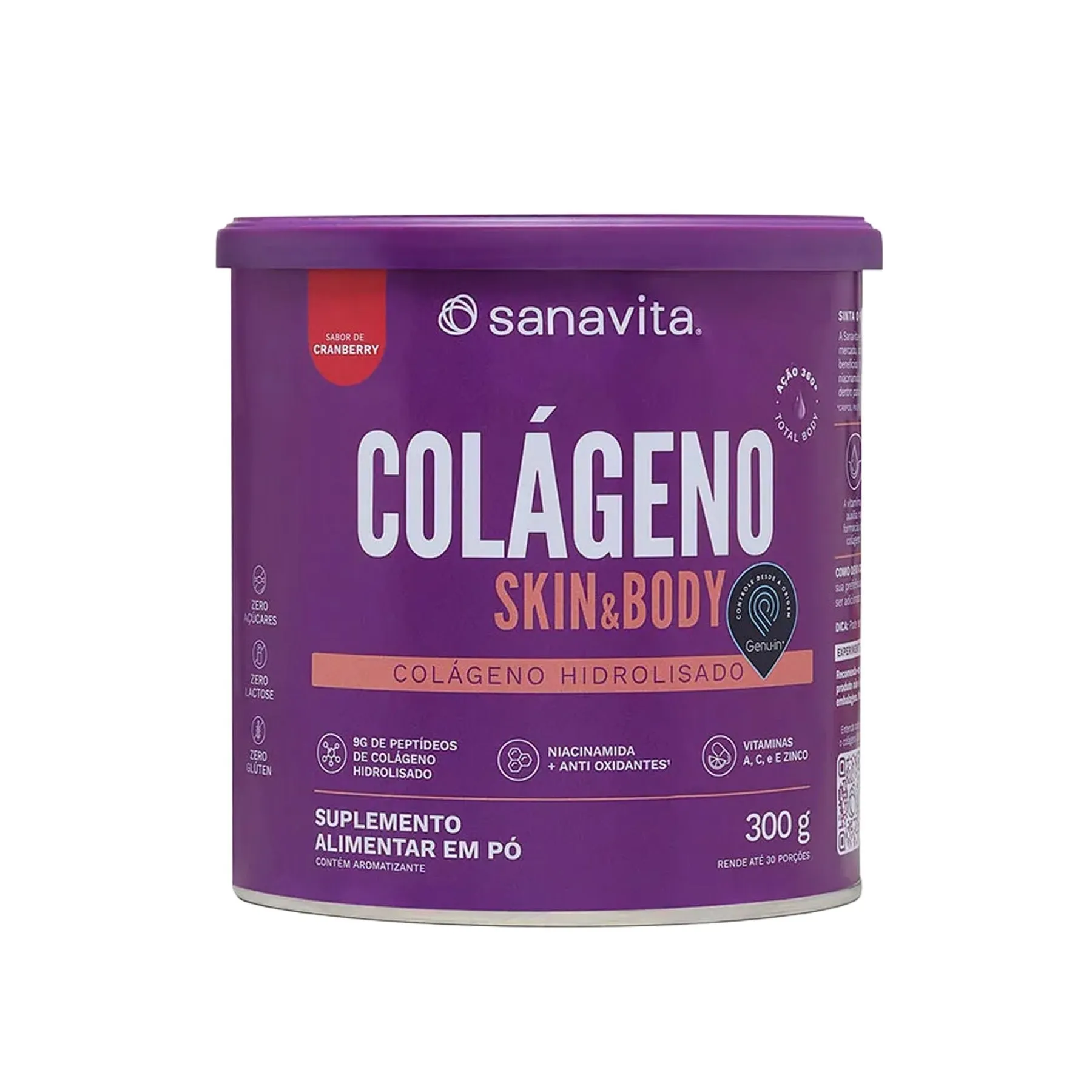 Sua fórmula combina proteínas como os peptídeos de colágeno Genuin®, com um complexo antioxidante de vitaminas A, C, E, zinco e niacinamida. A tecnologia Genuin®, oferece peptídeos de colágeno bio disponíveis de fácil absorção que atuam de forma 360°, ou seja, tem uma ação completa na nutrição e cuidado de todo o nosso corpo. O potente complexo de vitaminas e minerais presente no suplemento, potencializa os benefícios: auxilia na formação de colágeno, contribue para a manutenção da pele e protege contra os danos causados pelos radicais livres. Com resultados positivos, comprovados em estudos clínicos após 3 meses de uso*, o Colágeno Hidrolisado Skin Body é a escolha ideal para quem deseja repor colágeno, proteína e outros nutrientes.