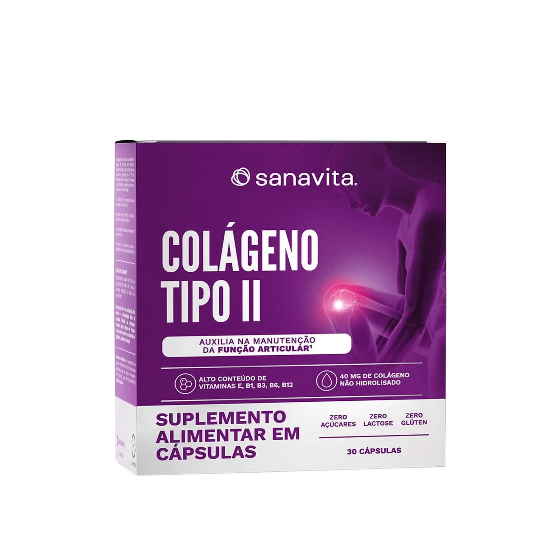 O Colágeno Tipo II é um suplemento desenvolvido para preservar a função articular e cuidar das articulações, contribuindo para uma vida ativa, com mobilidade. Diferente do colágeno hidrolisado, este suplemento contém colágeno tipo II não desnaturado, uma forma biologicamente ativa, indicada pelos profissionais da saúde, quando o assunto éflexibilidade das articulações. É especialmente indicado para pessoas que vivem uma rotina com sobrecarga nas articulações, como praticantes de atividades físicas e indivíduos com sobrepeso. O público 50+ e mulheres na menopausa, também podem se beneficiar. Cada cápsula contém 40mg de colágeno tipo II, potencializado por vitamina E e vitaminas do complexo B que reforçam os benefícios. A vitamina E atua como antioxidante, protegendo contra os danos causados pelos radicais livres, enquanto algumas vitaminas do complexo B, como a B6 e B12 auxiliam no funcionamento do sistema imune.