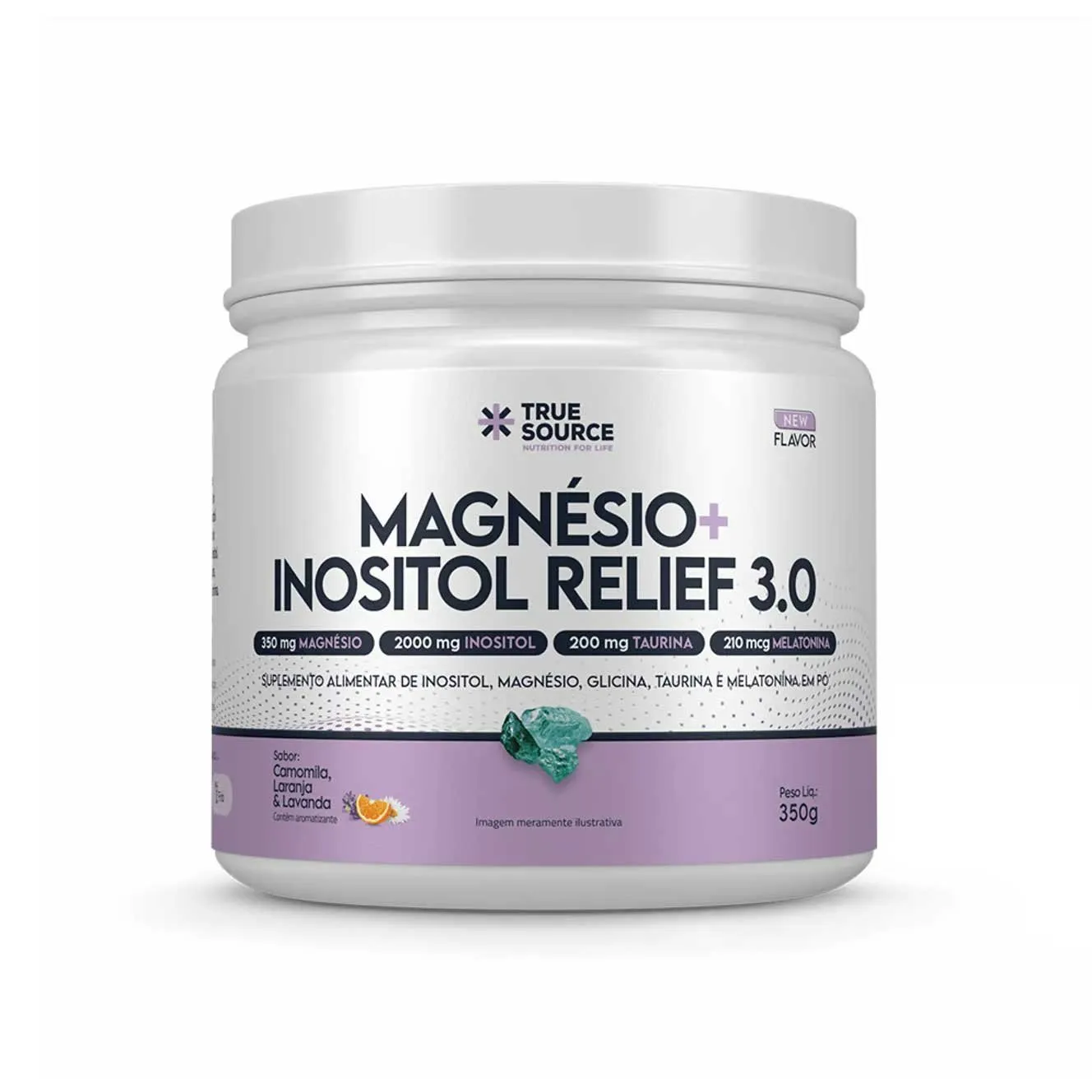 Magnésio - True Magnésio + Inositol Relief 3.0 - True Source Nosso suplemento combina dois componentes essenciais para o bom funcionamento do organismo. O Magnésio é um mineral que participa de mais de 300 reações metabólicas no corpo humano, é importante para saúde óssea, muscular, cardiovascular, intestinal, assim como na saúde do sistema nervoso central. Carências desse mineral podem acarretar diversos prejuízos à saúde. Já o Inositol é um componente que faz parte da família das vitaminas do complexo B. Está presente na membrana das células, principalmente as células do sistema nervoso central, otimizando a comunicação entre os neurônios.