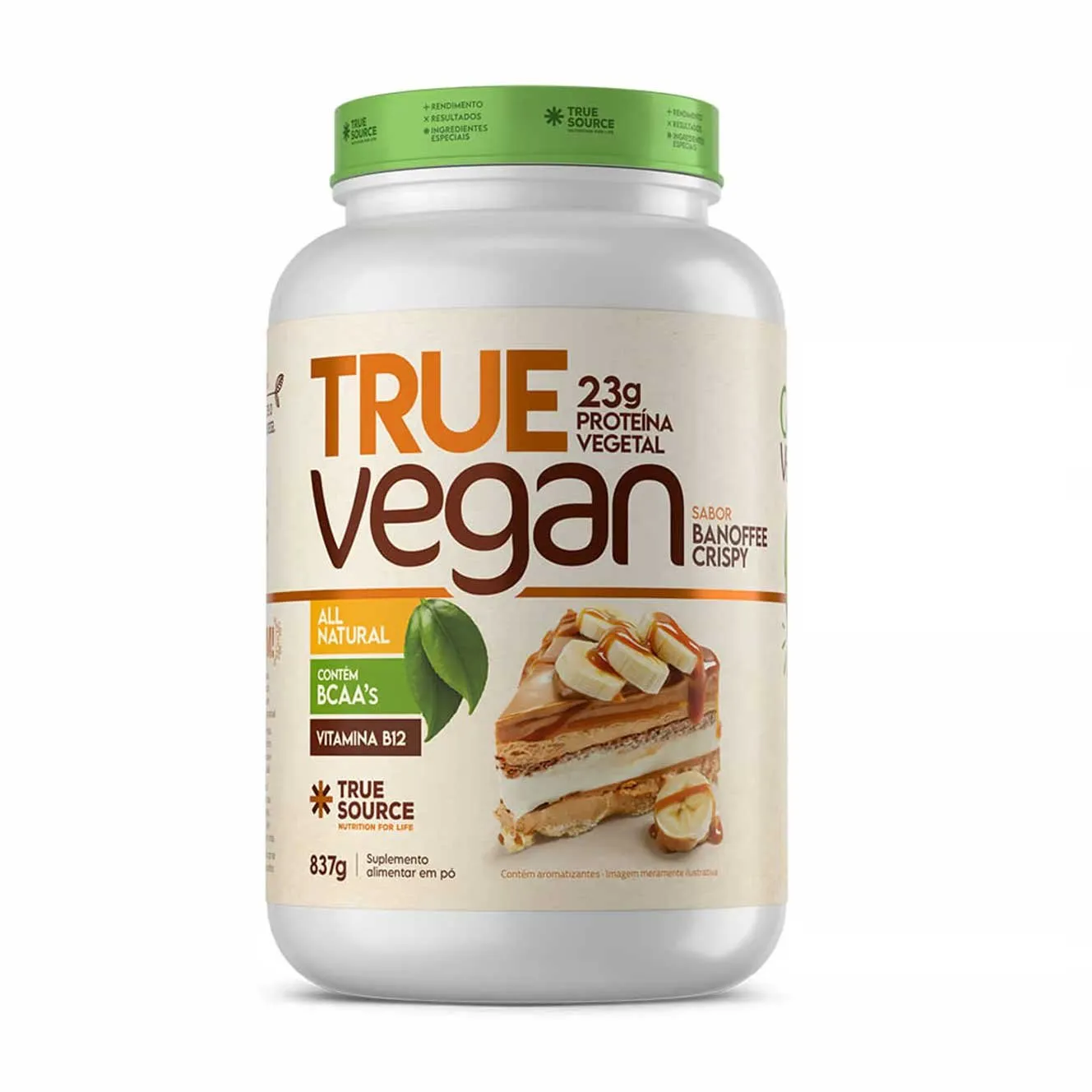 Proteína Vegana - True Vegan - True Source Nossa proteína vegana lhe proporciona um blend de proteínas vegetais como a do arroz integral, da ervilha, além da chia e da castanha de caju. Com um sabor incrível e cremosidade única, nosso True Vegan irá potencializar seus resultados. Em nosso produto oferecemos um aminograma muito similar ao do Whey Protein, pois contém ótimas quantidades de BCAAs. Os BCAAs são os aminoácidos de cadeia ramificada, muito importantes para a manutenção da massa magra, evitando o catabolismo e a fadiga muscular, porque sabemos que ninguém merece ficar com aquela sensação de cansaço excessivo após um treino mais intenso. A digestibilidade da nossa proteína vegetal é mais fácil e causa menos efeitos indesejáveis, como estufamento e gases.