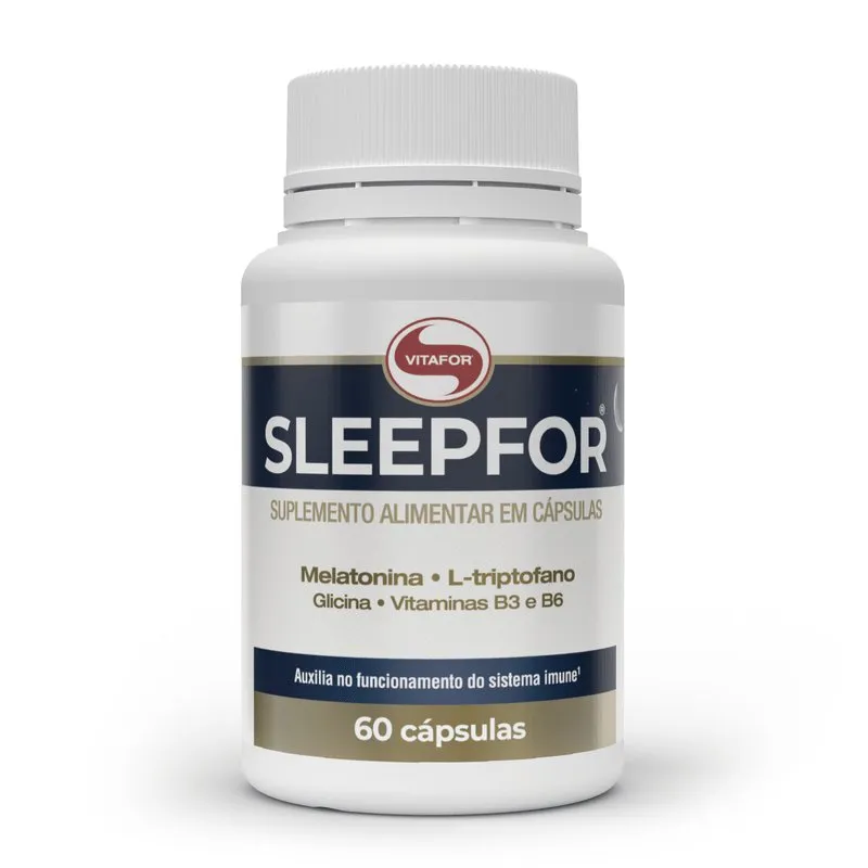 Sleepfor - 60 caps - vitafor é um suplemento formulado para promover um sono mais tranquilo e restaurador, auxiliando na equilíbrio do ciclo circadiano e no bem estar mental. Cada capsula oferece suporte ao sistema nervoso, contribui para a produção de serotonina e favorece o relaxamento muscular e emocional