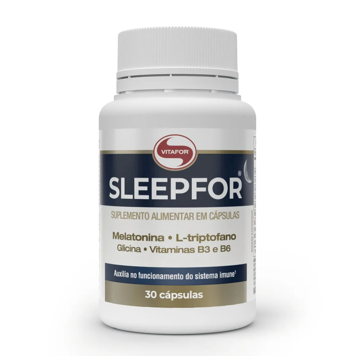 Sleepfor - 30 caps - vitafor é um suplemento formulado para promover um sono mais tranquilo e restaurador, auxiliando na equilíbrio do ciclo circadiano e no bem estar mental. Cada capsula oferece suporte ao sistema nervoso, contribui para a produção de serotonina e favorece o relaxamento muscular e emocional