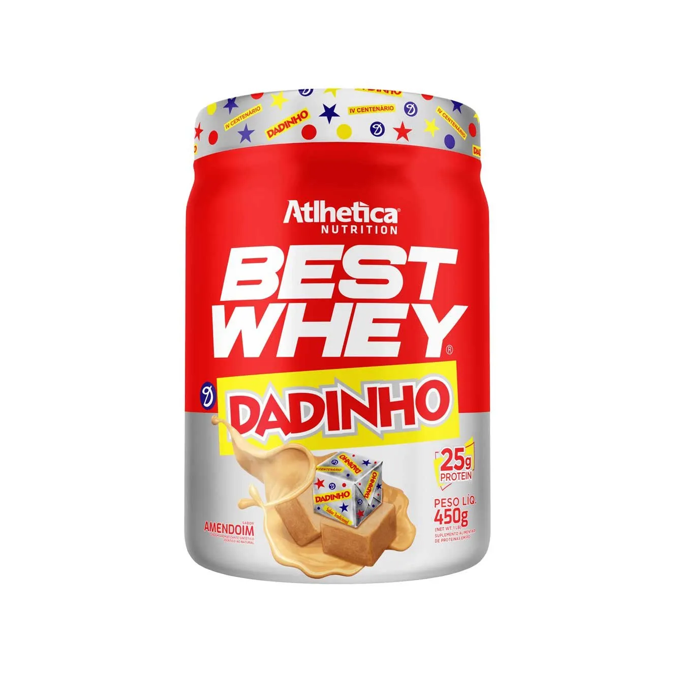 Whey Protein - Best Whey Protein Dadinho - ATLHETICA NUTRITION Nossa equipe especializada em Inovação, Pesquisa e Desenvolvimento foi até o fundo do baú para resgatar o sabor da infância e produzir o novíssimo Best Whey sabor Dadinho, o verdadeiro gosto de nostalgia! A novidade conta com 25g de proteína por porção, adoçado com Stevia, zero açúcar, zero glúten, zero gordura trans, baixo teor de carboidratos e ideal para você conseguir os resultados desejados na academia. Antes ou depois do treino, Best Whey Dadinho possui a exclusiva fórmula com blend de proteínas WPC, WPI e WPH, importantes para auxiliar na recuperação muscular, ganho de massa, rendimento nas atividades físicas e ainda colaboram na reeducação alimentar, uma vez que ajuda na saciedade. Best Whey + Dadinho = o verdadeiro sabor da sua infância.